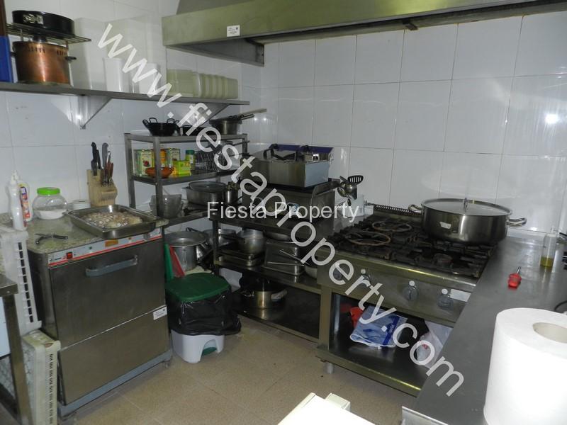 At the very back of this long cafe bar is where the professional kitchen is situated having stainless steel work benches, stainless steel fridges, double sink and drainer, shelving, industrial oven and gas burners together with full extraction – all are to a good restaurant standard.